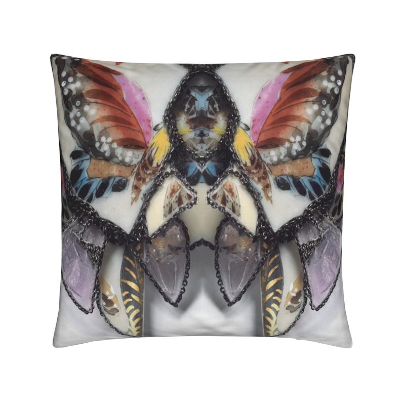 Designer cushion inspired by the "Social Butterfly" brooch within Liana Pattihis's art jewellery collection "Scentimental". It comes in two sizes 30cm x 30cm and 40cm x 40cm square. It is printed with the same image, both front and back.